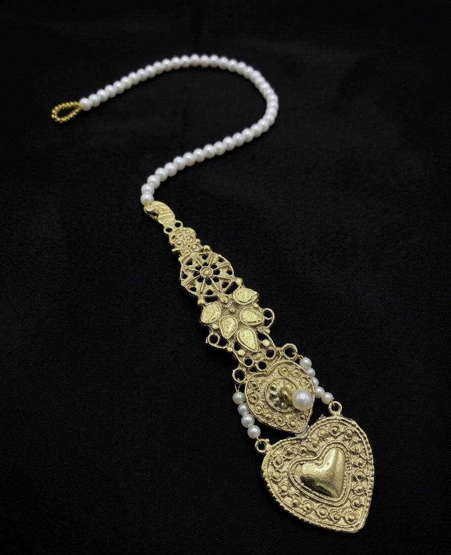 Add a touch of regal elegance to your bridal or festive ensemble with this exquisitely crafted Sahara. Designed to drape gracefully from the hair to the ear or side-head, this piece blends traditional craftsmanship with romantic motifs.