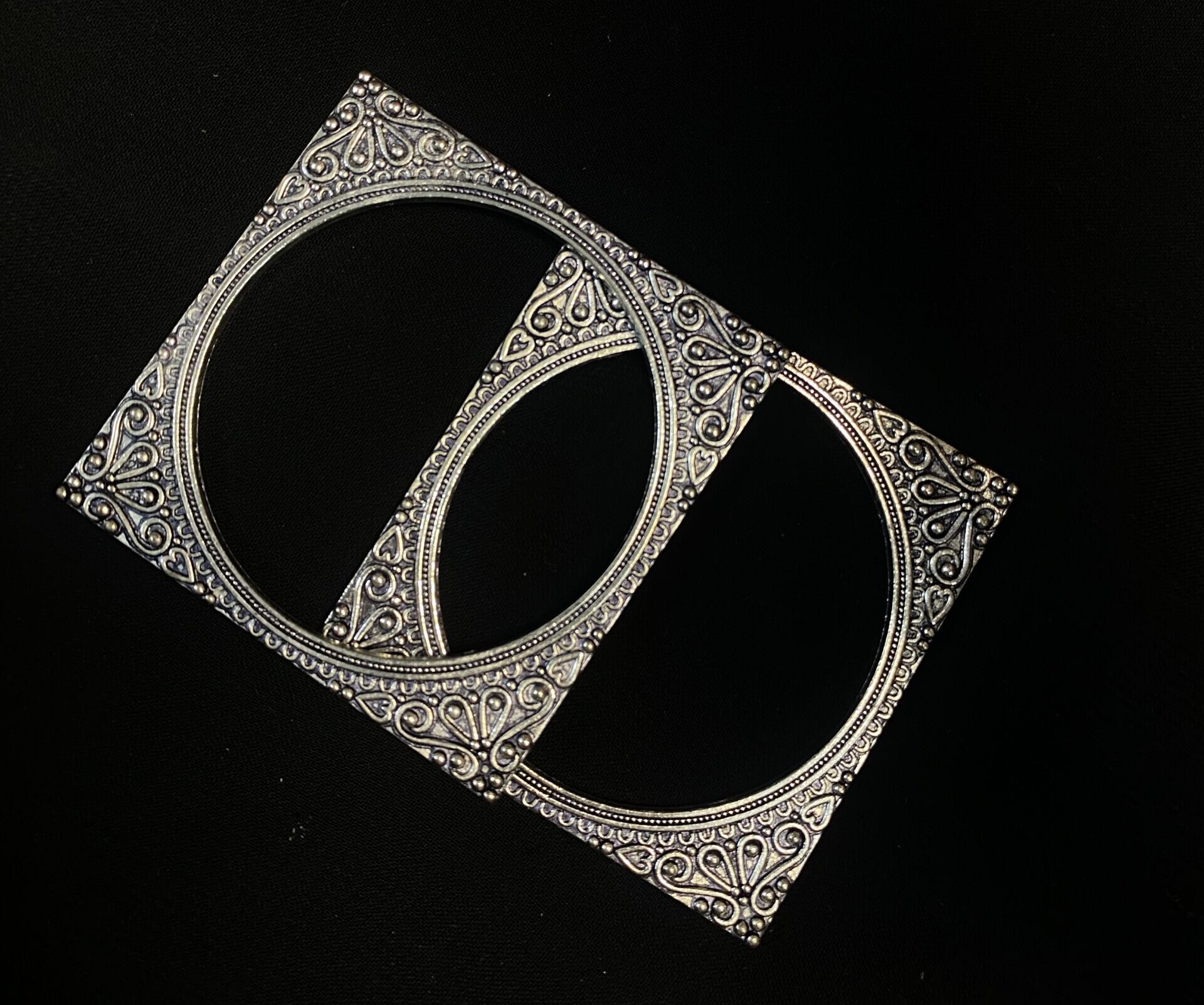 The Pair of Geometric Square Bangles are a masterclass in structural elegance. By combining a classic circular interior with a bold square exterior, these bangles offer a dramatic visual play that is both contemporary and deeply rooted in artisanal tradition. The corners are meticulously etched with swirling heart and teardrop motifs, reminiscent of vintage royal jewelry, while the overall shape feels fresh and architectural. Whether you are wearing them as a solo statement piece with a modern jumpsuit or stacking them with silver chains, these bangles are designed for the woman who isn’t afraid to break tradition while honoring it.